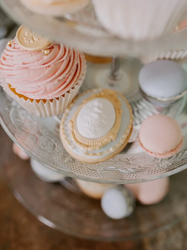 Here is a selection of additional sweet treats, such as cupcakes, macarons, cookies and cake truffle hearts, which could be arranged to create a dessert table or used individually as favours.